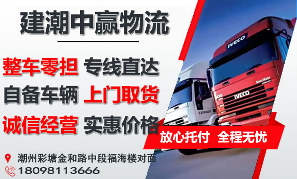 同时,建潮中赢物流为了方便广大客户从潮州到肇庆的不同运输时效和物流成本要求,建潮中赢物流特推出潮州到肇庆物流公司相关业务,以此来降低从潮州到肇庆运输的物流成本,提高潮州到肇庆的物流效率,以便为新老客户提供更加完善的从潮州到肇庆的一站式优质物流服务!
